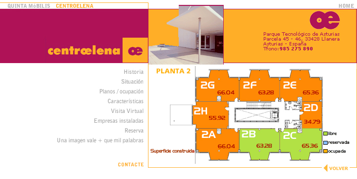 Representación gráfica sobre planos de inmuebles,diseñada para empresas inmobiliarias. Tanto el usuario como el administrador de la web puedan organizar la ocupación, de forma visual, con un código de colores por estado de ocupación (reservado, vendido, libre...) Es posible ocultar o mostrar información según el estado. Se ha utilizado por ejemplo en los siguientes sitios promocionales: Proescor, Centroelena, Llanesparaiso...
